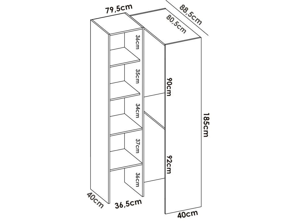 Armoire Arera, Structure Pour Dressing D’angle, Porte-manteau D’angle Ouvert, 248x79h187 Cm, Chêne