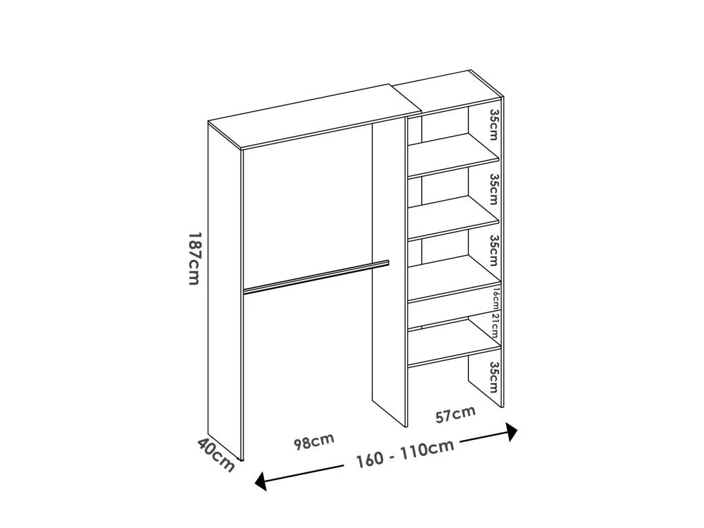 Aménagement Dressing Extensible Chêne/Noir – GARI – L 140/179 X L 48 X H 207 Cm