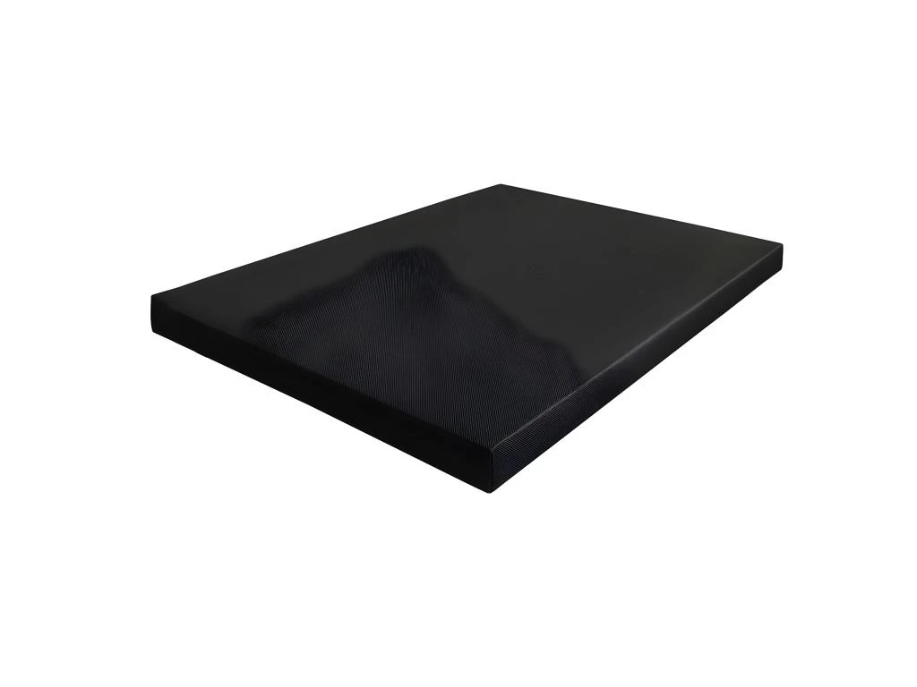 Sommier en MDF et Pin, épaisseur 12cm, 11 Lattes de largeur 75mm. Garnissage fibre polyester 150g/m2. Coutil 100% polyester coloris noir.