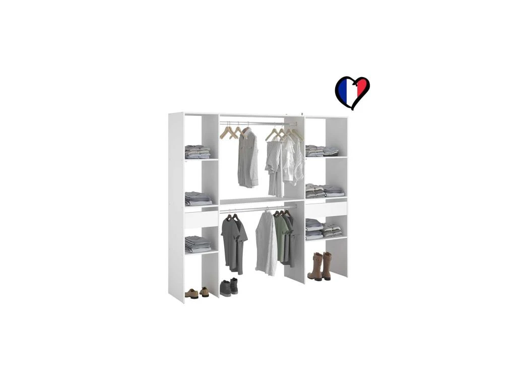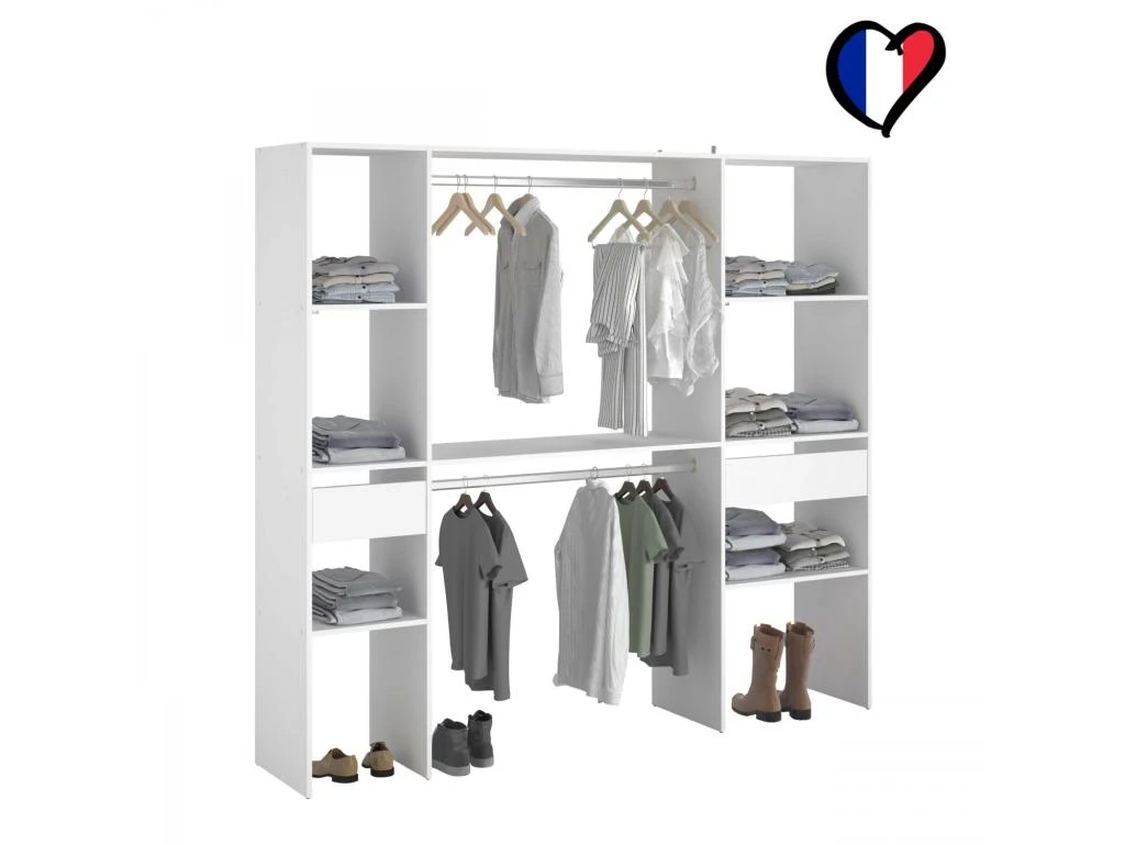Elysée – Dressing Blanc Extensible Avec 2 Penderies, 4 étagères Et 2 Tiroirs