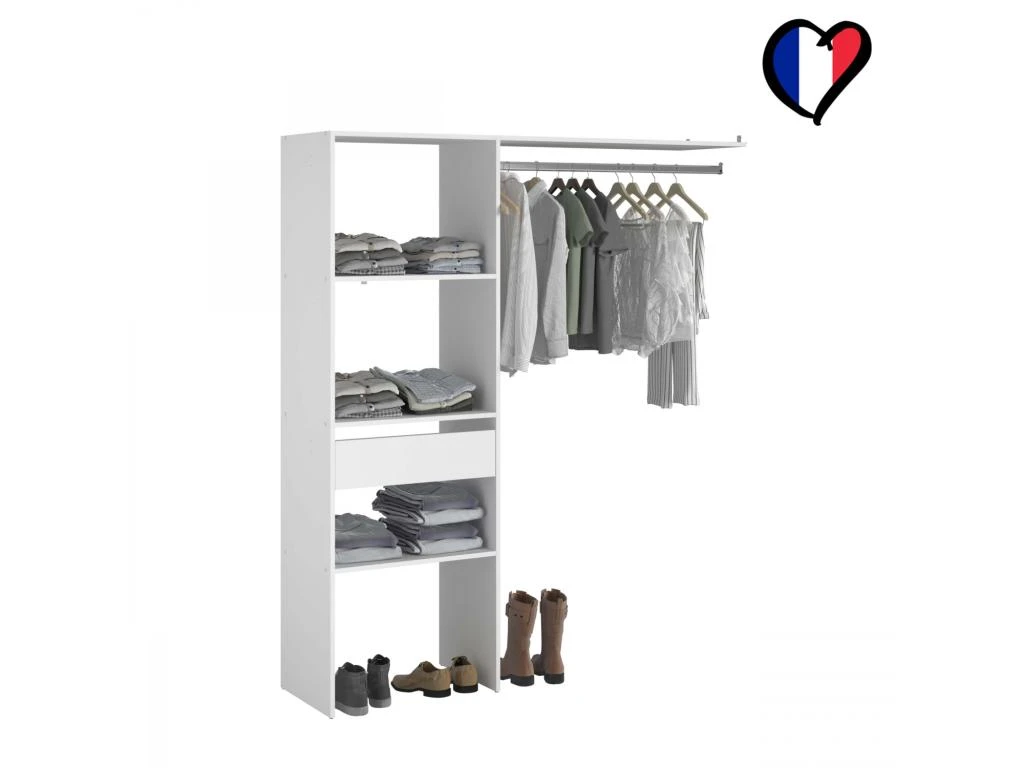 Elysée – Dressing Avec 2 Penderies, 6 étagères Et 2 Tiroirs Blanc