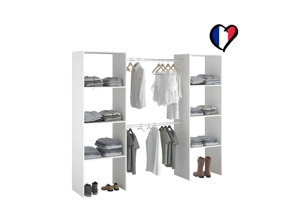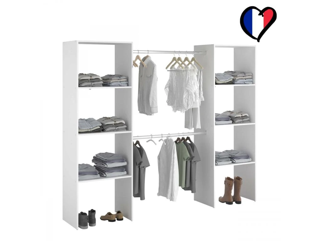 Elysée – Dressing Bois Extensible Avec 2 Penderies, 4 étagères Et 1 Tiroir