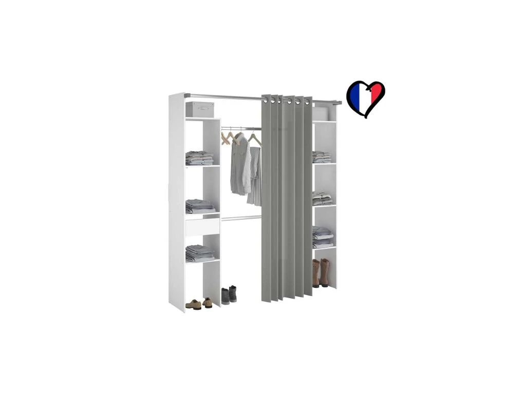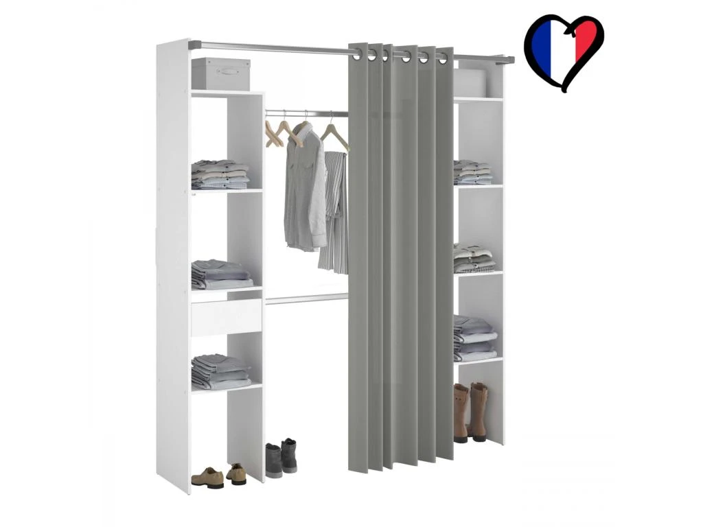 Elysée – Dressing Bois Extensible Avec 2 Penderies, 4 étagères Et 1 Tiroir