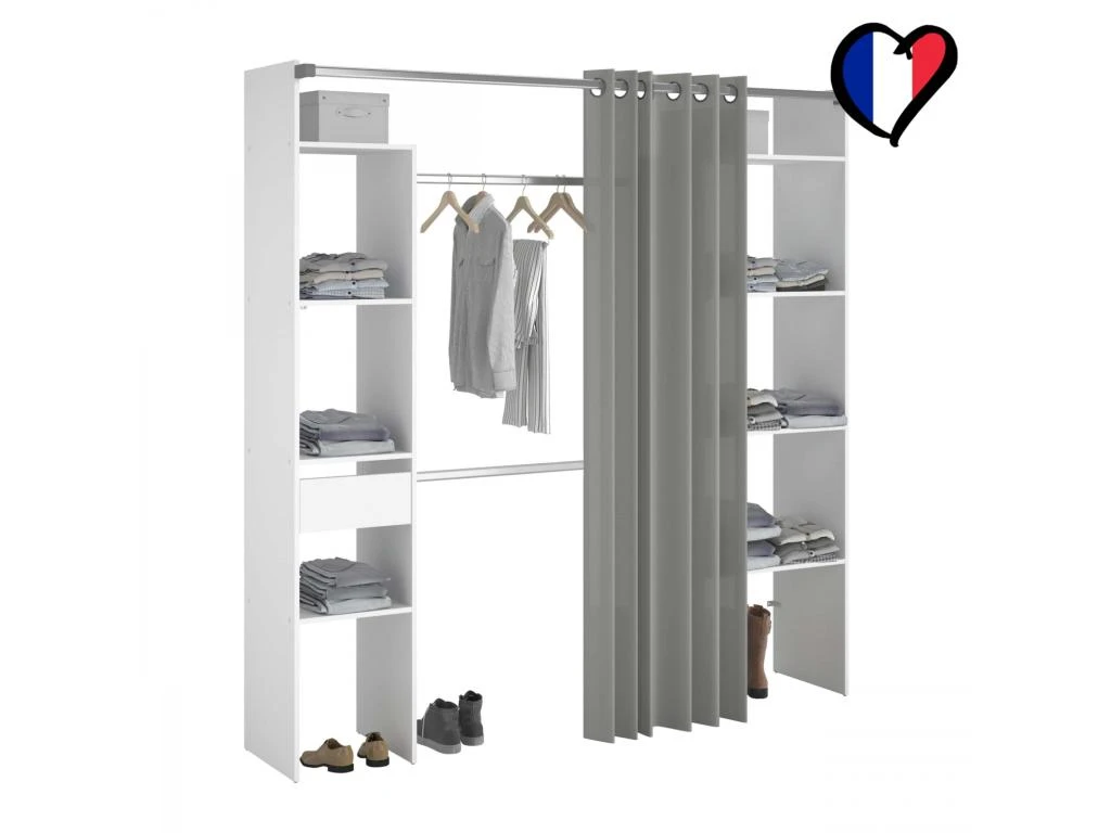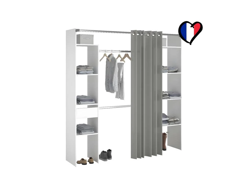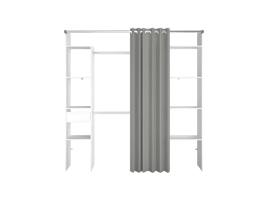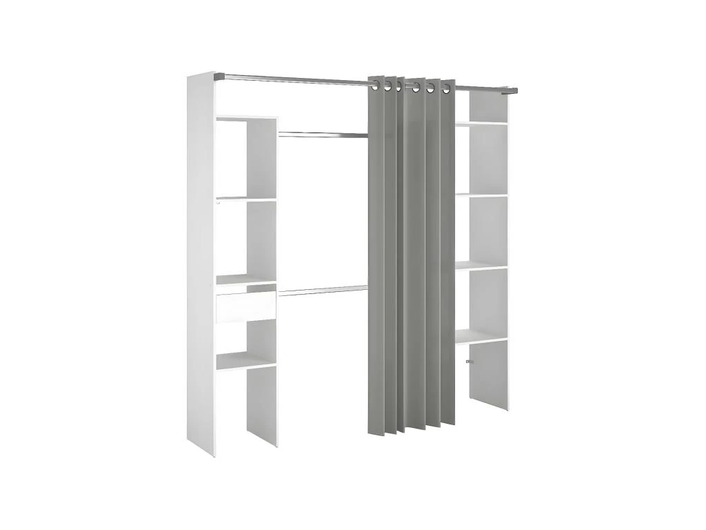 Dressing D’angle Avec Rideau Et 1 Porte – Avec Miroir – L231 Cm – Blanc Et Gris – BERTRAND