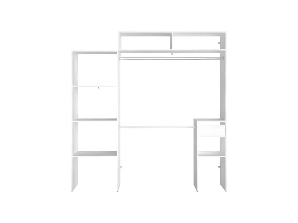 Elysée – Dressing Blanc Extensible Avec 2 Penderies, 4 étagères Et 2 Tiroirs