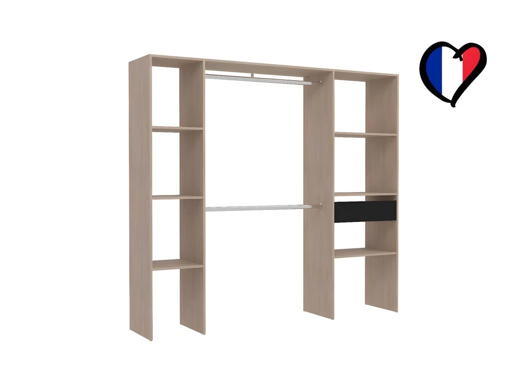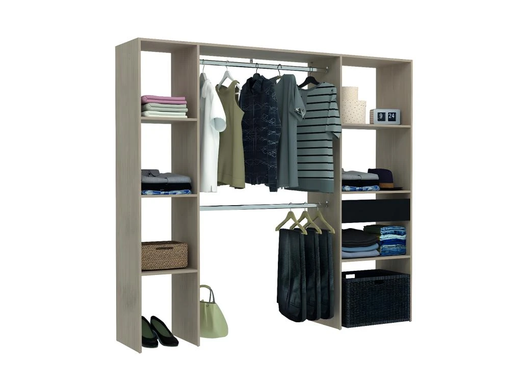 Elysée – Dressing Bois Extensible Avec 2 Penderies, 4 étagères Et 1 Tiroir