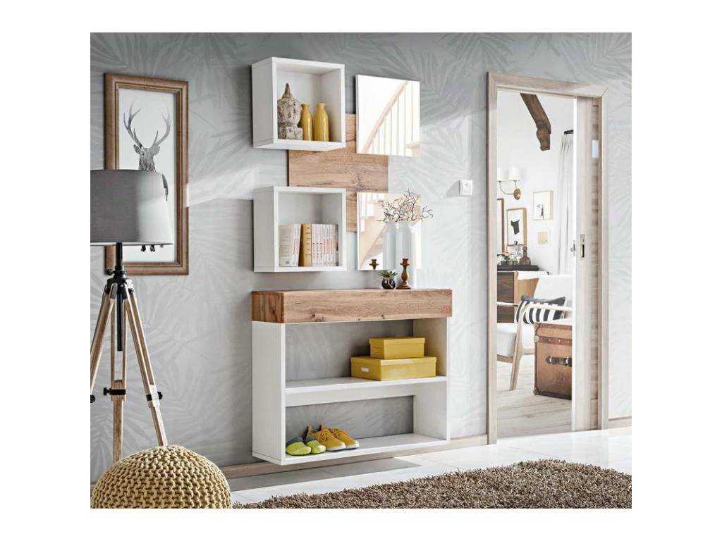 - Panneau Mural, 2 Étagères & 2 Miroirs : L. 100 x l. 20 x H. 100 cm