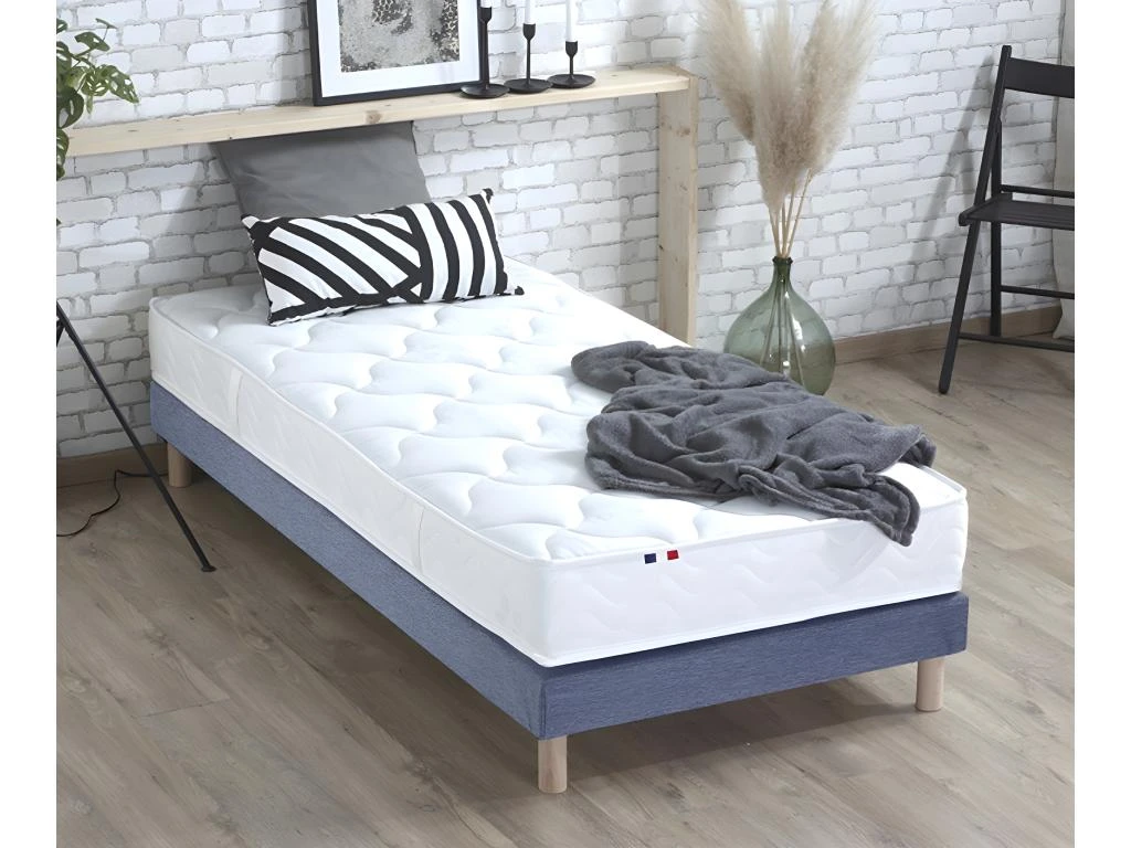 Livré avec 1 seul sommier et 4 pieds de 12 cm bois brut en 90x190cm.