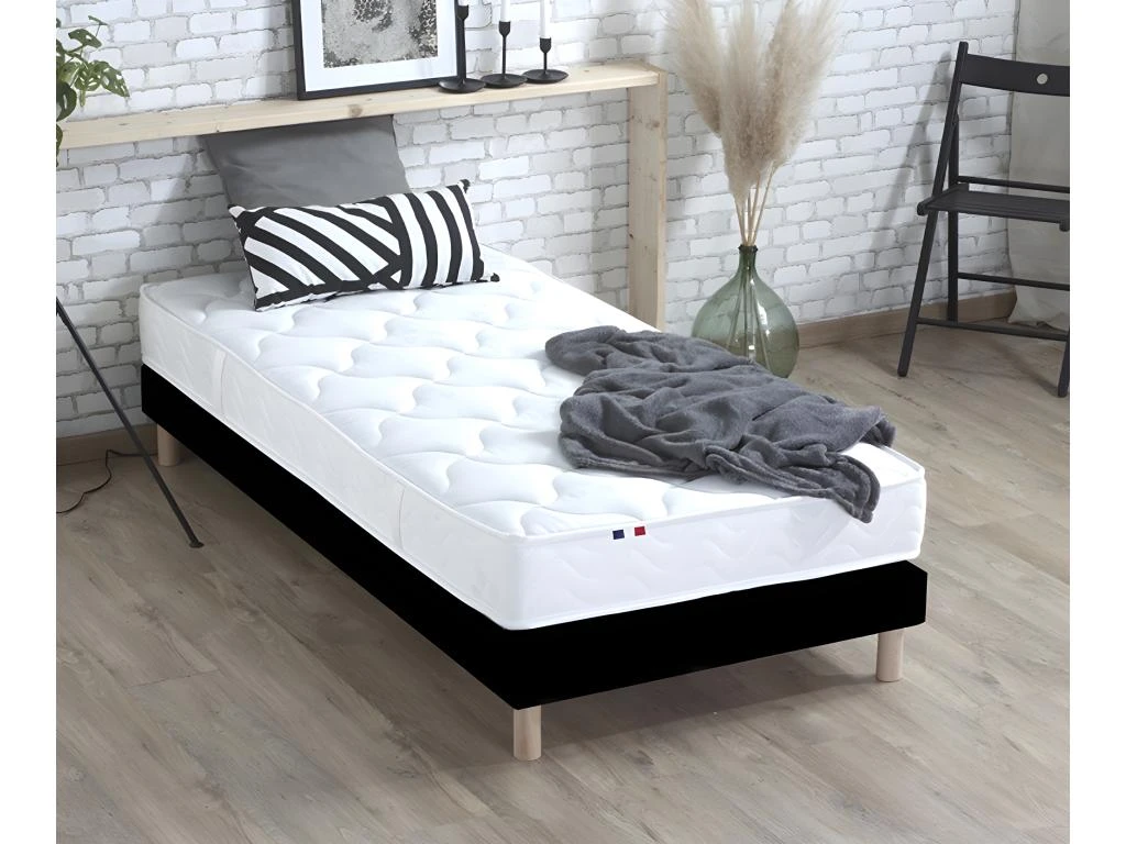 Ensemble Matelas 100% Latex 3 Zones ESSENTIEL + Sommier – Fabriqué En France Dimensions – 90 X 190 Cm, Sommier – Noir