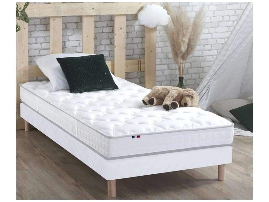 Ensemble Matelas 100% Latex 5 Zones ORIGINEL + Sommier – Spécial Dos Sensible – Fabriqué En France Dimensions – 90 X 200 Cm, Sommier – Blanc