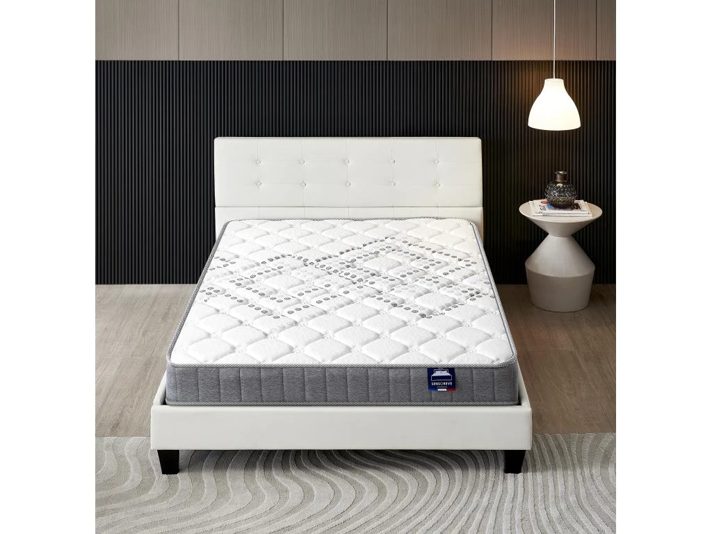 Le matelas Eliha est conçu selon les normes élevées de qualité de fabrication Sensoreve. Il combine la technologie ressort ensachés sur 5 zone et mousse haute densité pour vous garantir des nuits confortables et régénératrices.