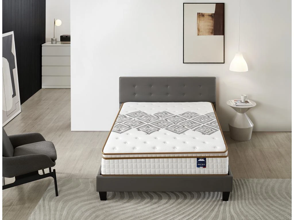 Le matelas Errakis est conçu selon les normes élevées de qualité de fabrication Sensoreve. Il combine la technologie ressort ensachés sur 5 zone et mousse haute densité pour vous garantir des nuits confortables et régénératrices.