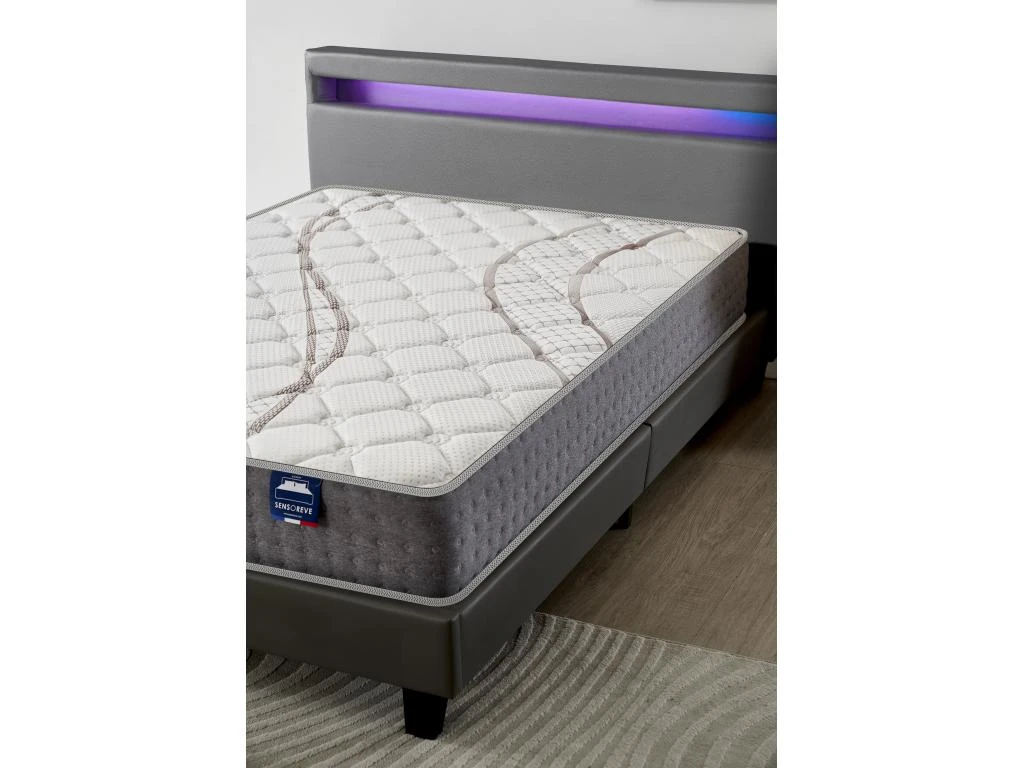 Le matelas Essem est conçu selon les normes élevées de qualité de fabrication Sensoreve. Il combine la technologie ressort ensachés sur 5 zone et mousse haute densité pour vous garantir des nuits confortables et régénératrices.