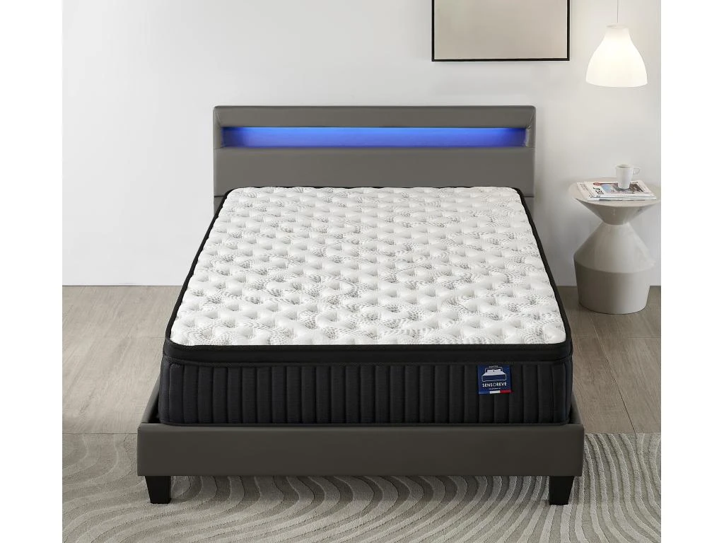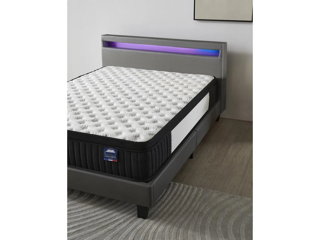 Le matelas Elekctra est conçu selon les normes élevées de qualité de fabrication Sensoreve. Il combine la technologie ressort ensachés sur 5 zone et mousse mémoire de forme haute densité pour vous garantir des nuits confortables et régénératrices. Ce matelas hybride vous procurera un très grand confort, une alliance des traditions et des matelas nouvelle génération.