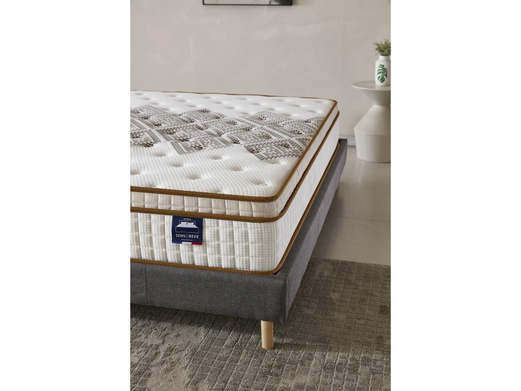 Le matelas Errakis est conçu selon les normes élevées de qualité de fabrication Sensoreve. Il combine la technologie ressort ensachés sur 5 zone et mousse haute densité pour vous garantir des nuits confortables et régénératrices.