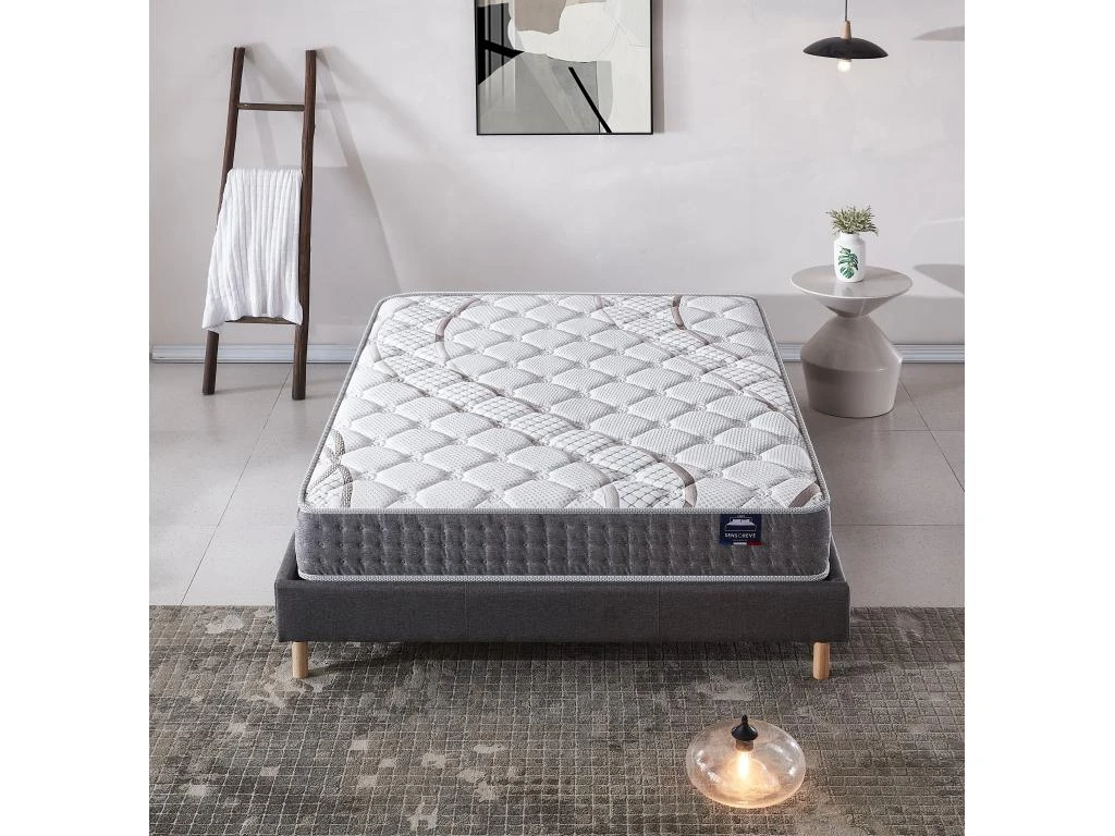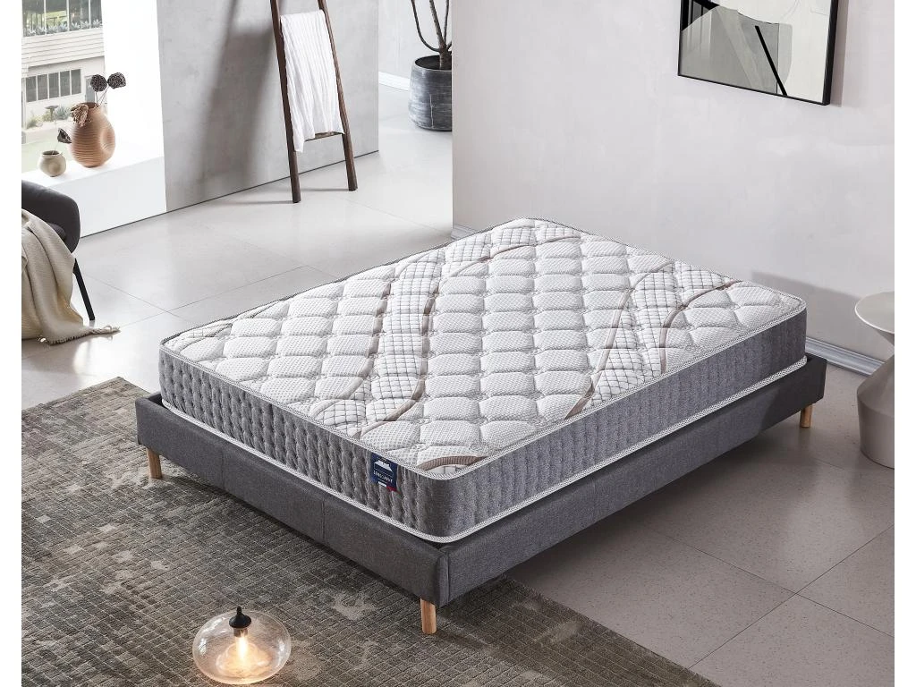 Le matelas Essem est conçu selon les normes élevées de qualité de fabrication Sensoreve. Il combine la technologie ressort ensachés sur 5 zone et mousse haute densité pour vous garantir des nuits confortables et régénératrices.