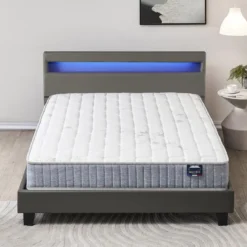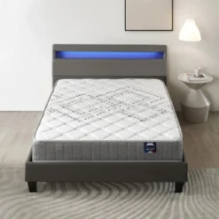 Ensemble Matelas Ressorts Ensachés + Lit Avec Tête De Lit 140x200cm-Epaisseur 25cm Accueil Mémoire