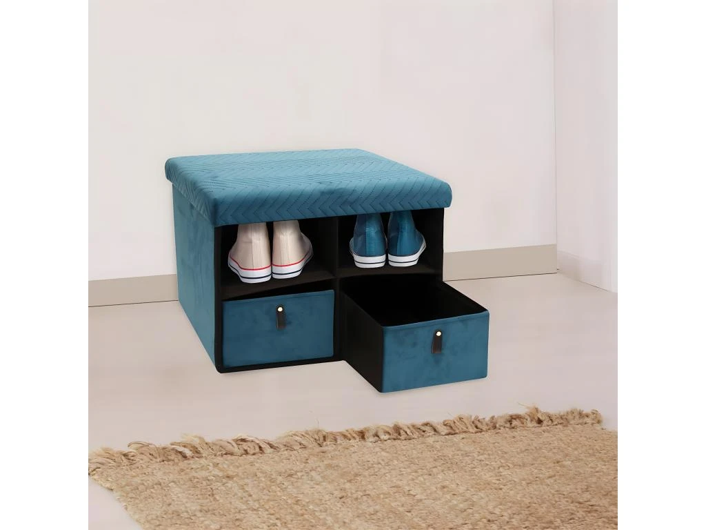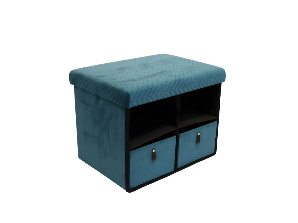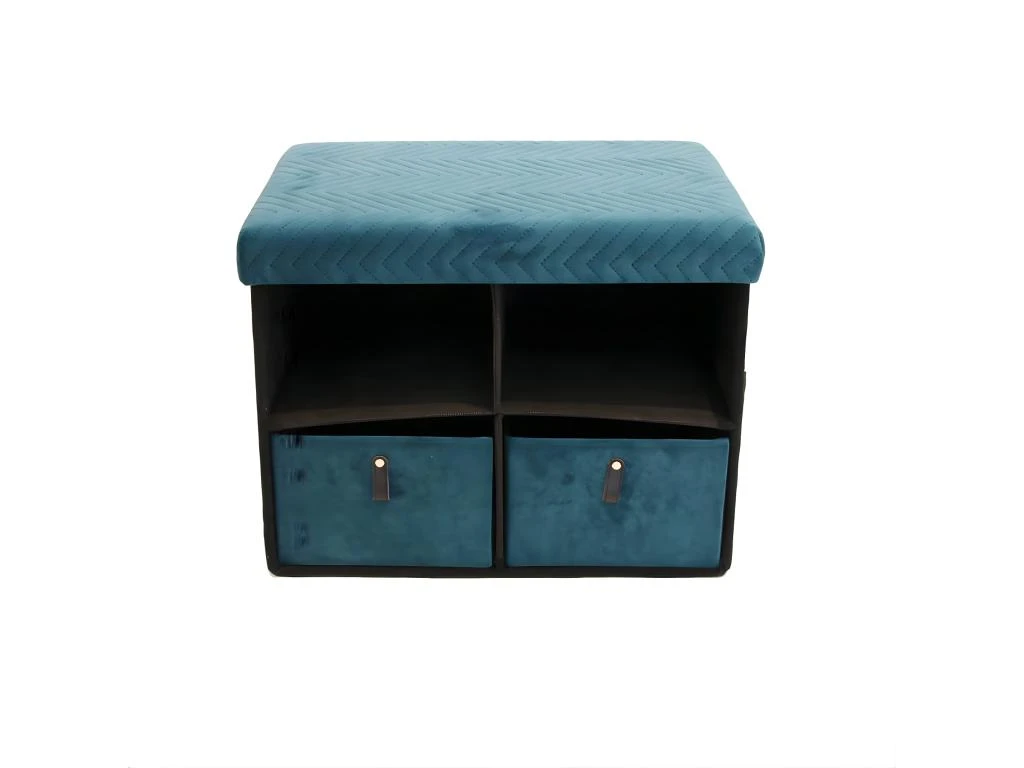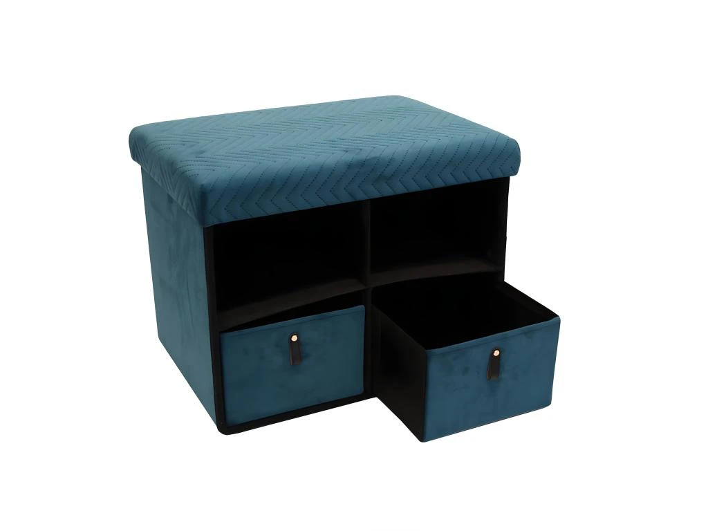 Banc Pliable Velours Bleu Canard Avec Tiroirs de la gamme Floy.
