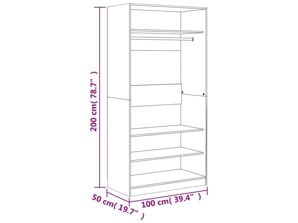 - Dimensions : 100 x 50 x 200 cm (l x P x H)