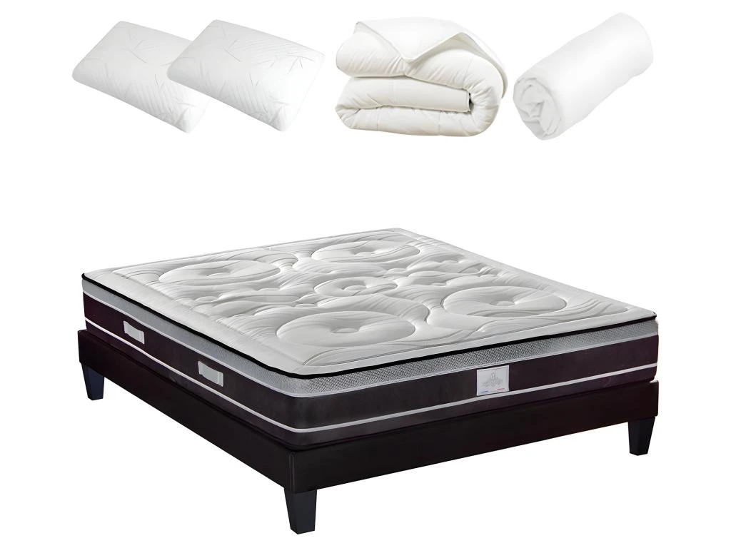 - Âme intérieure (CertiPUR) : 759 ressorts ensachés + 4 cm de mousse viscoélastique à mémoire de forme de 60 kg/m³ + 1,5 cm de mousse hypersoft + 1 cm de mousse de confort + 100 gr/m² de fibres PES