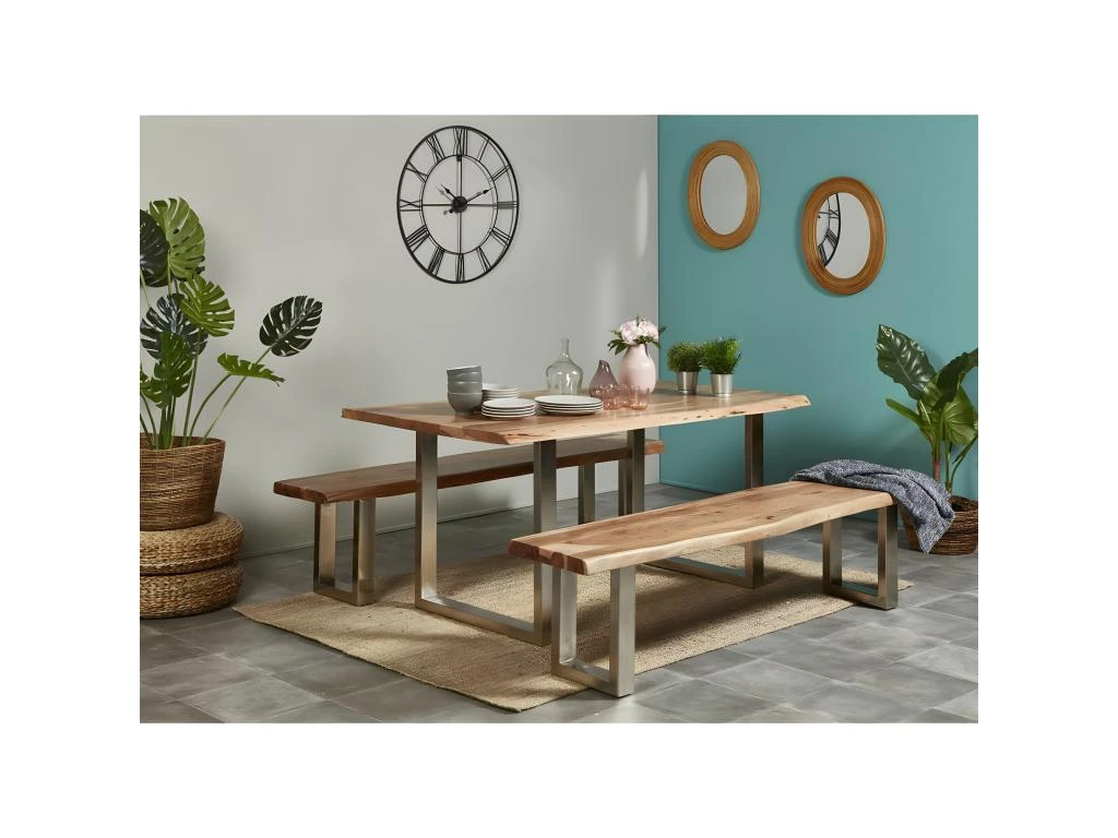 Banc 160 cm Acacia et Métal Chromé Piètement U de la gamme Jaipur.