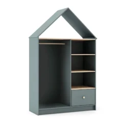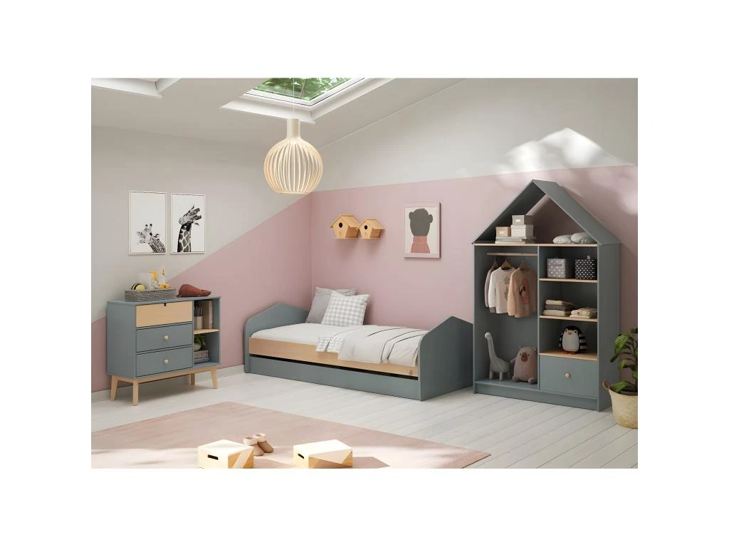 Dressing Cabane Enfant MDF et Pin Coloris Gris Vert et Naturel de la gamme Kaina.