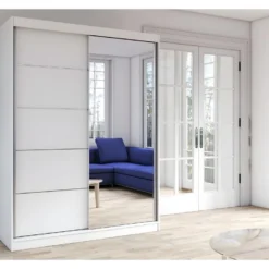 Armoire 2 Portes Coulissantes – Avec Miroir – L231cm – Coloris : Naturel Et Ivoire – ADALRIK II