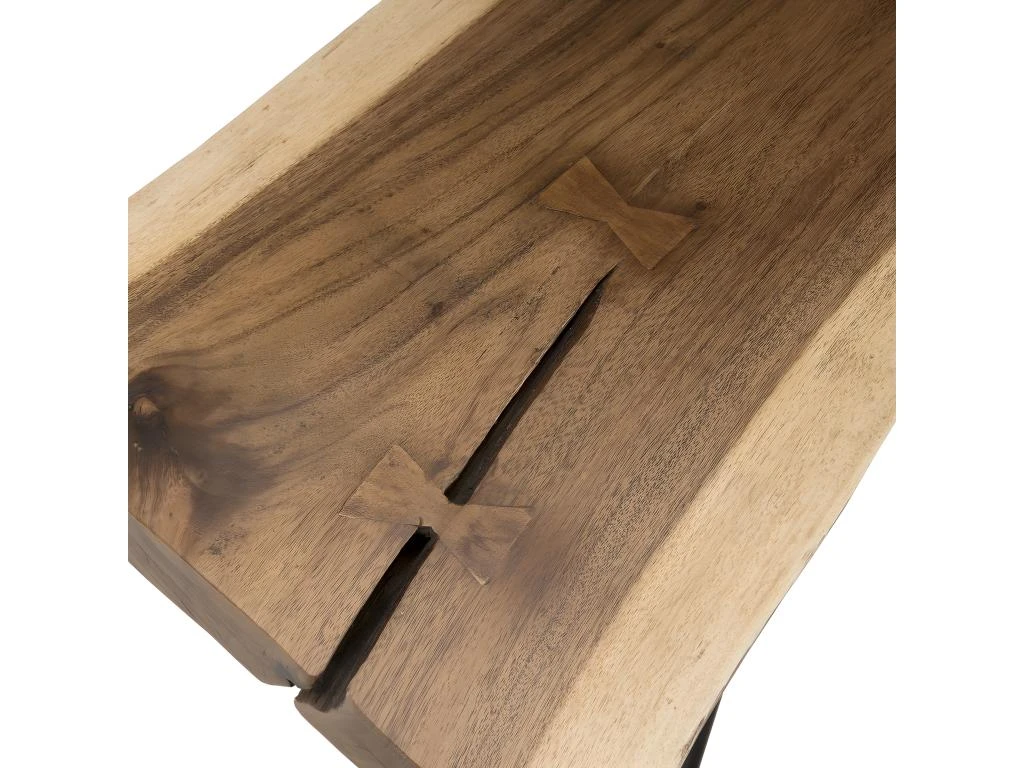 Banc nature Mungur pieds épingles scandi métal. Dimensions : 160 x 45 x 44 cm. Article en Mungur et Acier. Cet article est composé de bois de Mungur ! Ce bois exotique est utilisé à l’état brut pour fabriquer ce produit authentique. Il est donc normal qu’il présente des variations de teintes ainsi que des petites irrégularités puisqu’il s’agit de sa particularité.