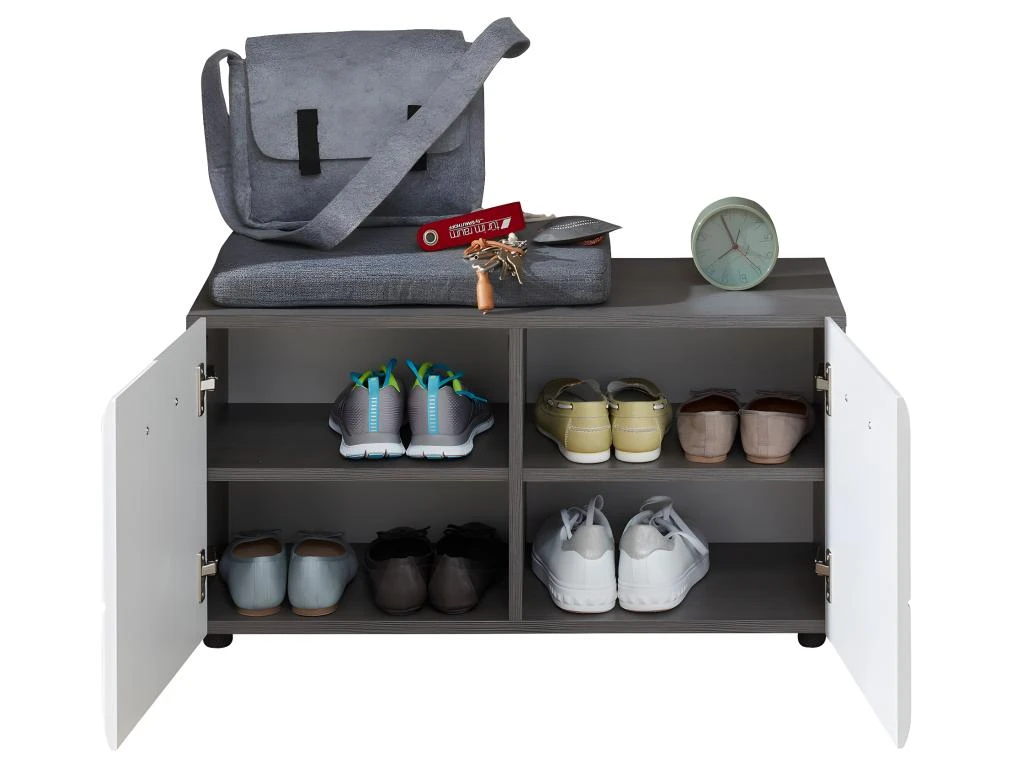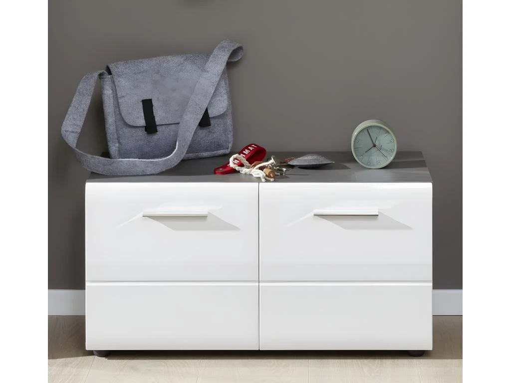 LineGD Banc, 2 portes, argent fumé, blanc brillant. Obtenez des meubles de bonne qualité, confortables, conçus dans un design élégant et moderne. Nos meubles sont vendus à des prix vraiment très attractifs et compétitifs. Créez un intérieur qui vous ressemble, en créant un style qui vous est propre grâce à de nouveaux meubles. Combinez vos meubles avec d’autres éléments et accessoires pour créer une athmosphère chic et à la mode. Soyez toujours au goût du jour en matière d’habitat, et suivez les dernières tendances telles que présentées dans les revues et les magazines. Chez nous, vous trouverez des modèles de meubles et de décoration d’intérieur absolument uniques, chics et ultra confortables. Tous nos meubles offrent un design tendance.