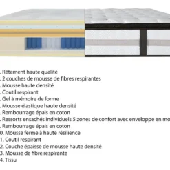Matelas 140×190 Memo Luxe Ressorts Ensachés + Mémoire De Forme 5 Zones De Confort MAXI épaisseur