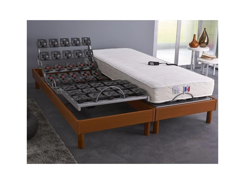 Découvrez les avantages et le confort de ce sommier de relaxation tous plots décor bois de merisier.