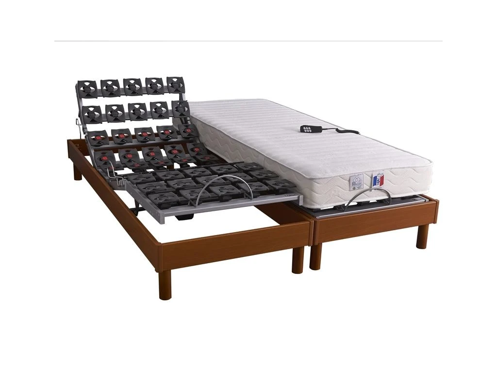 Découvrez les avantages et le confort de ce sommier de relaxation tous plots décor bois de merisier.