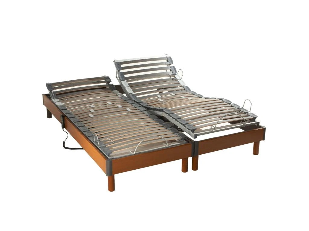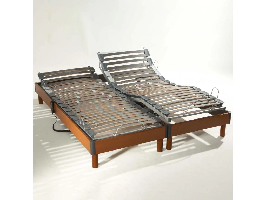 Découvrez les avantages et le confort de ce sommier de relaxation à lattes finition bois merisier.