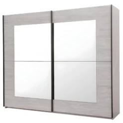 Structure en panneaux de particules, dĂ©cor effet bois grisĂ©. Miroirs sur chaque portes inclus. Portes Ă©quipĂ©es du système Softclosing.Â