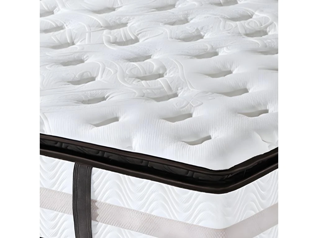 - COMPOSITION : Sur-matelas avec gel à mémoire de forme. Revêtement résistant et respirant. Traitement anti humidité, statique, acariens et bactérien. Tissu coton bio qui répond aux normes de protection de l’environnement (Oeko-Tex Standard 100). Régulation optimum avec une nouvelle technologie de tissu rafraichissant. 588 ressorts ensachés et ceinture latérale de maintien. Système no flip.