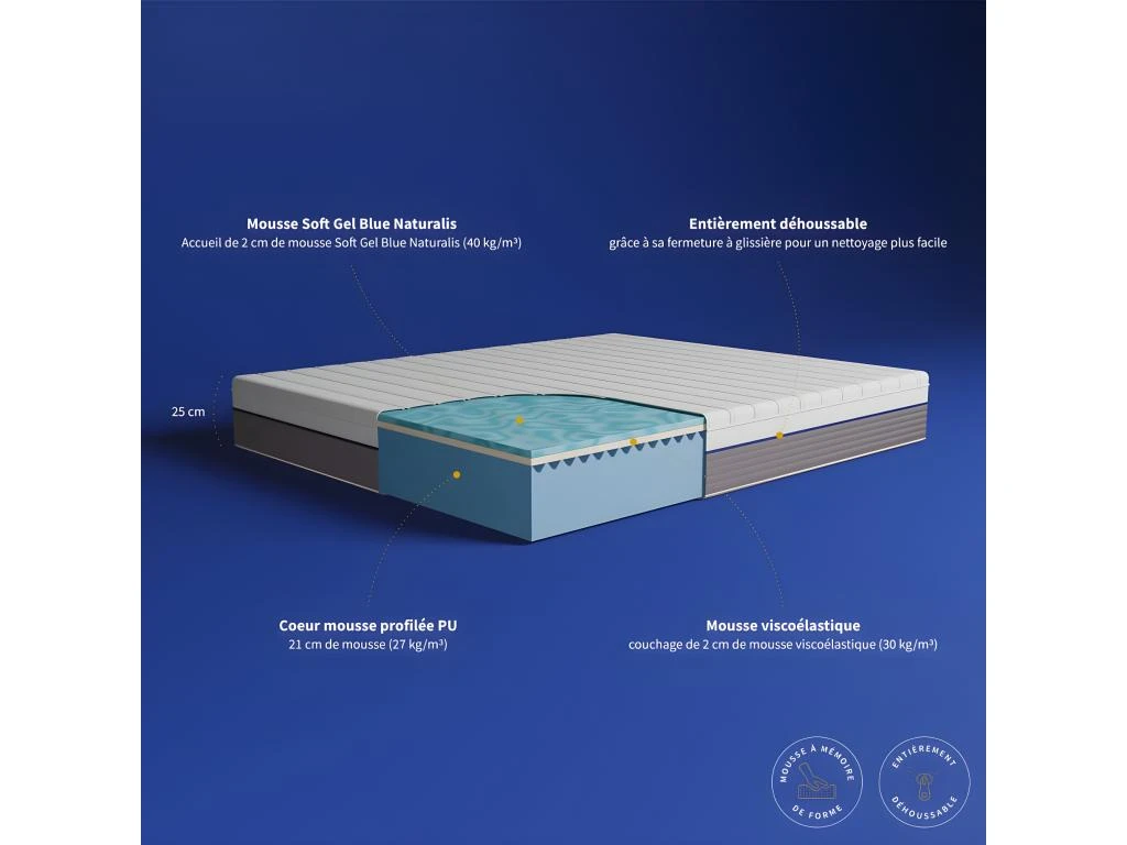 – 2cm de mousse Soft Gel Bleu Naturalis + 2cm mousse viscoélastique