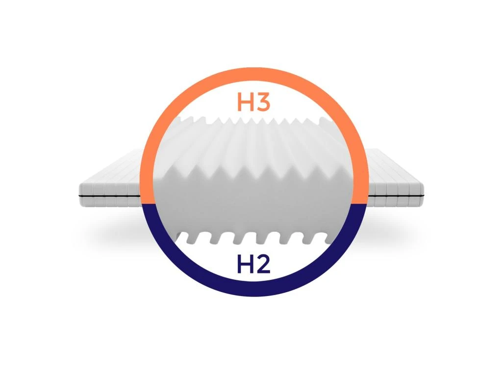 Le noyau de mousse froide comporte 7 zones de couchage intégrées, créées par des incisions dans le noyau du matelas ce qui donne au matelas une surface légèrement ondulée.