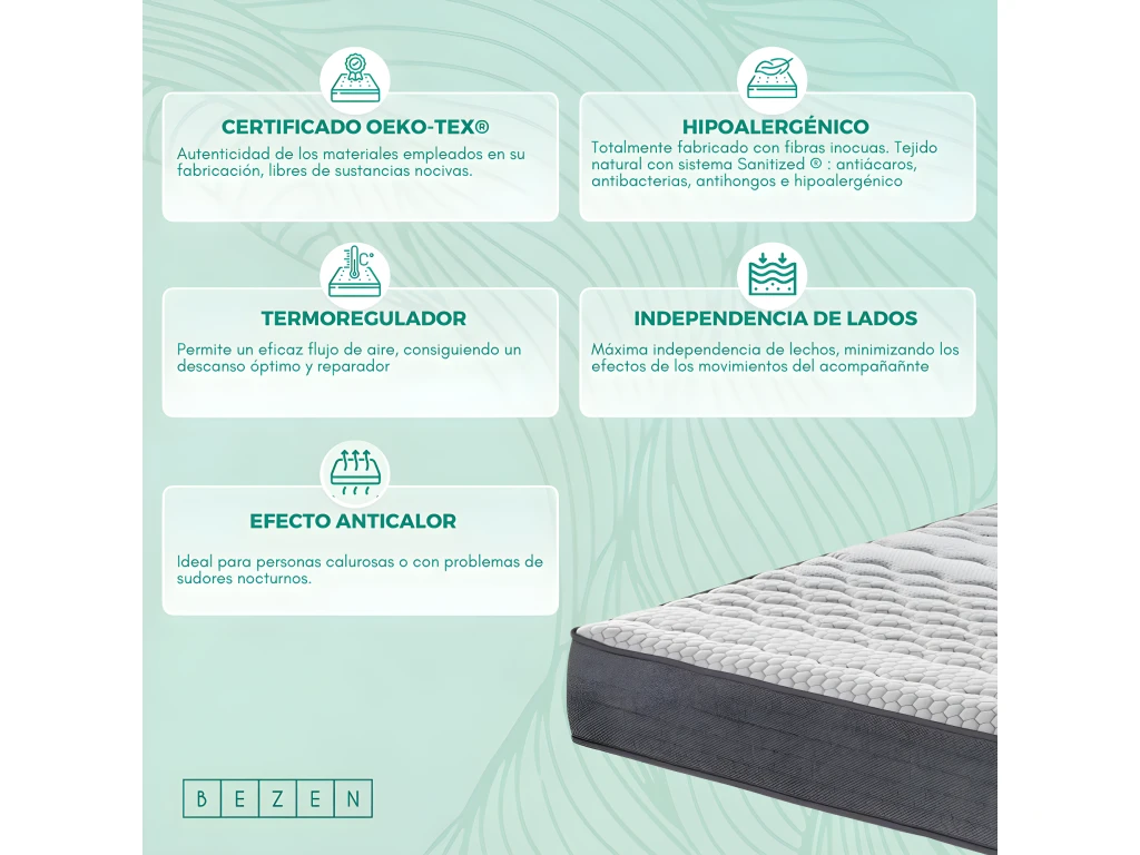 - Avec son tissu extensible avec des catalyseurs de réabsorption d’énergie, il stimule le système nerveux et la circulation sanguine. De plus, il est doté d’un rembourrage thérapeutique spécial en fibres naturelles.