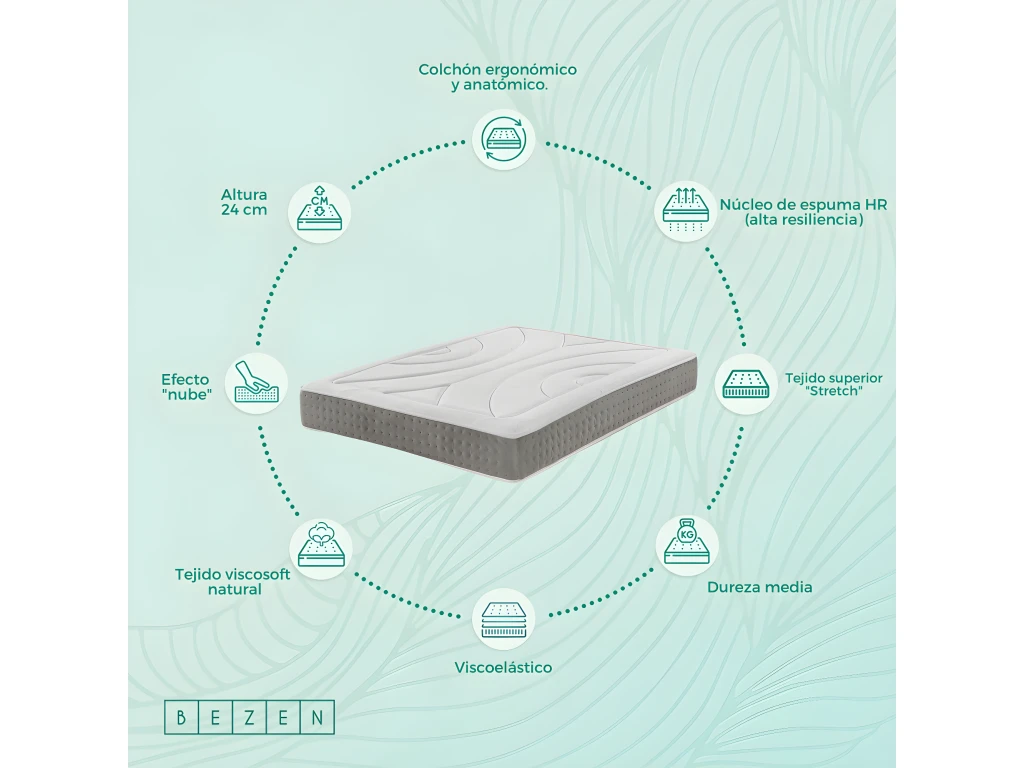 - Matelas de 24 cm de hauteur avec couche à mémoire de forme de 4 cm avec une densité de 55kg/m3.