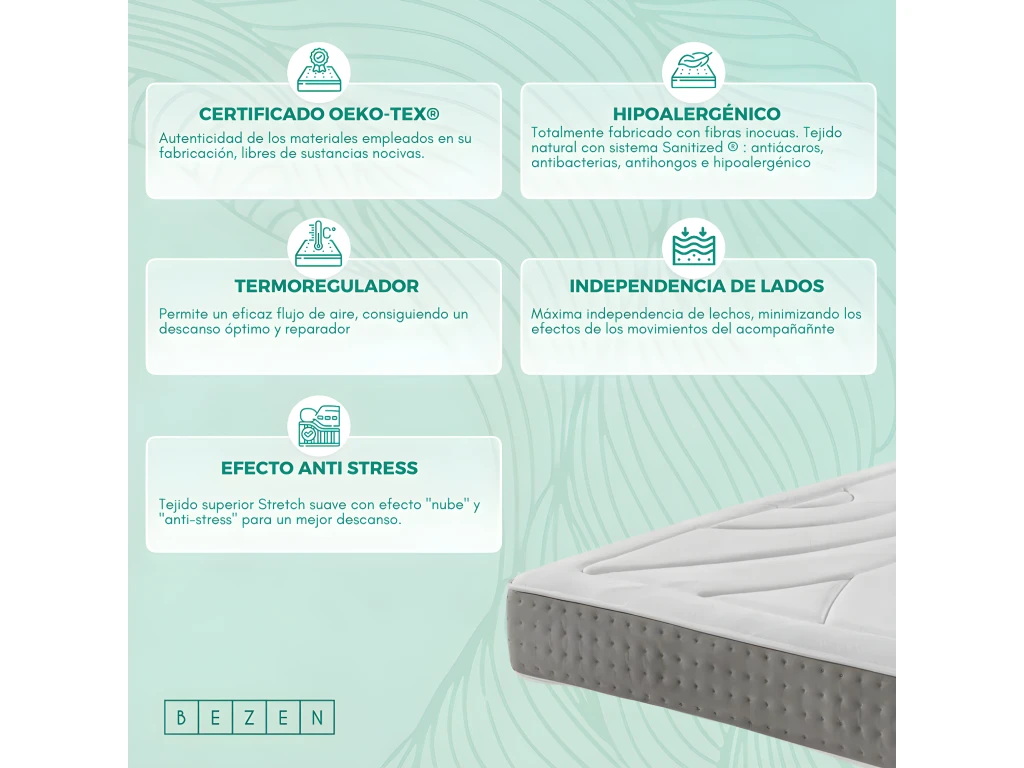 - Tissu supérieur Soft Stretch avec effet « nuage » et « anti-stress » pour un meilleur repos.