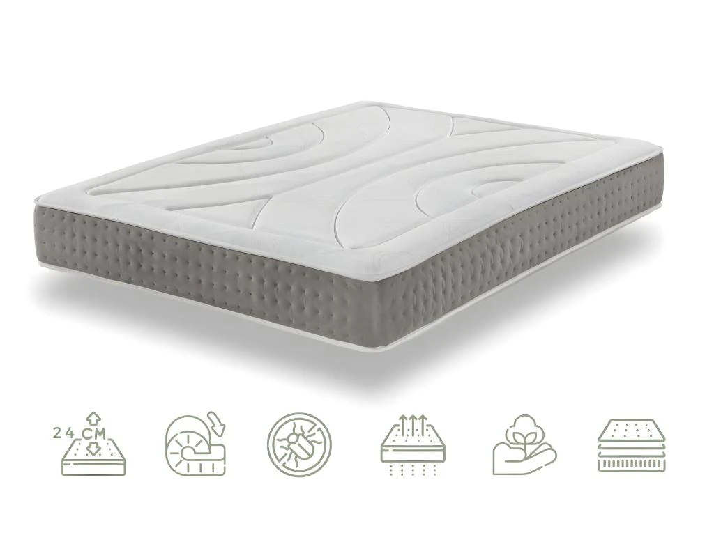 - Matelas de 24 cm de hauteur avec couche à mémoire de forme de 4 cm avec une densité de 55kg/m3.