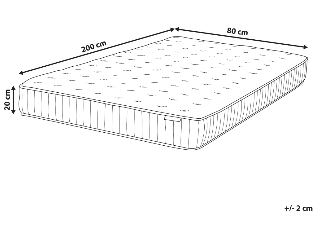 Informations supplémentaires: Le matelas à ressorts ensachés est idéal pour les personnes qui recherchent du meilleur confort. C’est une excellente solution pour les personnes souffrant de transpiration excessive et de personnes au poids élevé, car le matelas reprend sa forme initiale après pression. Le matelas possède les labels CertiPUR-US et STANDARD 100 OEKO-TEX, ce qui signifie qu’il est libre de toutes substances nocives. Le produit nécessite un certain temps après le déballage pour atteindre sa forme idéale. Nous vous recommandons de le déplier dès que possible, de lui donner jusqu’à 72 heures pour se redresser, ainsi que de mettre un poids lourd sur les extrémités pour un meilleur rendu.