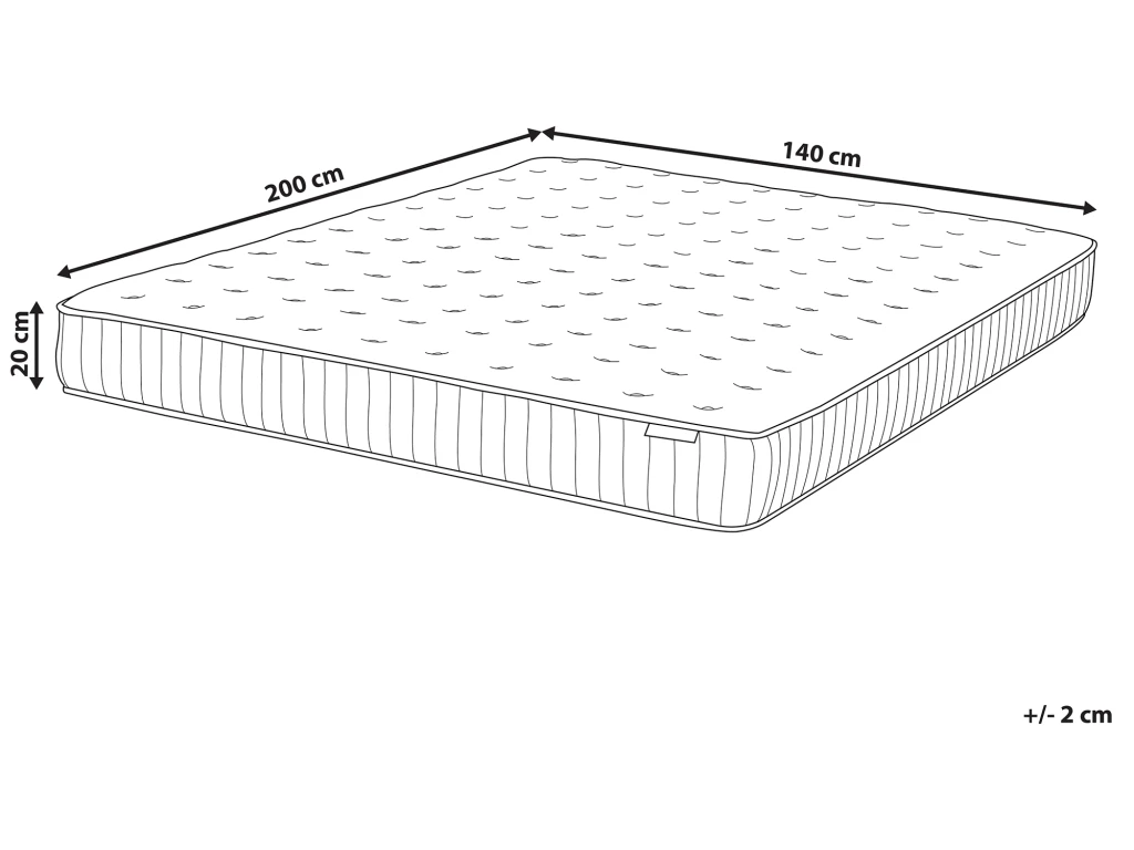 Informations supplémentaires: Le matelas à ressorts ensachés est idéal pour les personnes qui recherchent du meilleur confort. C’est une excellente solution pour les personnes souffrant de transpiration excessive et de personnes au poids élevé, car le matelas reprend sa forme initiale après pression. Le matelas possède les labels CertiPUR-US et STANDARD 100 OEKO-TEX, ce qui signifie qu’il est libre de toutes substances nocives. Le produit nécessite un certain temps après le déballage pour atteindre sa forme idéale. Nous vous recommandons de le déplier dès que possible, de lui donner jusqu’à 72 heures pour se redresser, ainsi que de mettre un poids lourd sur les extrémités pour un meilleur rendu.