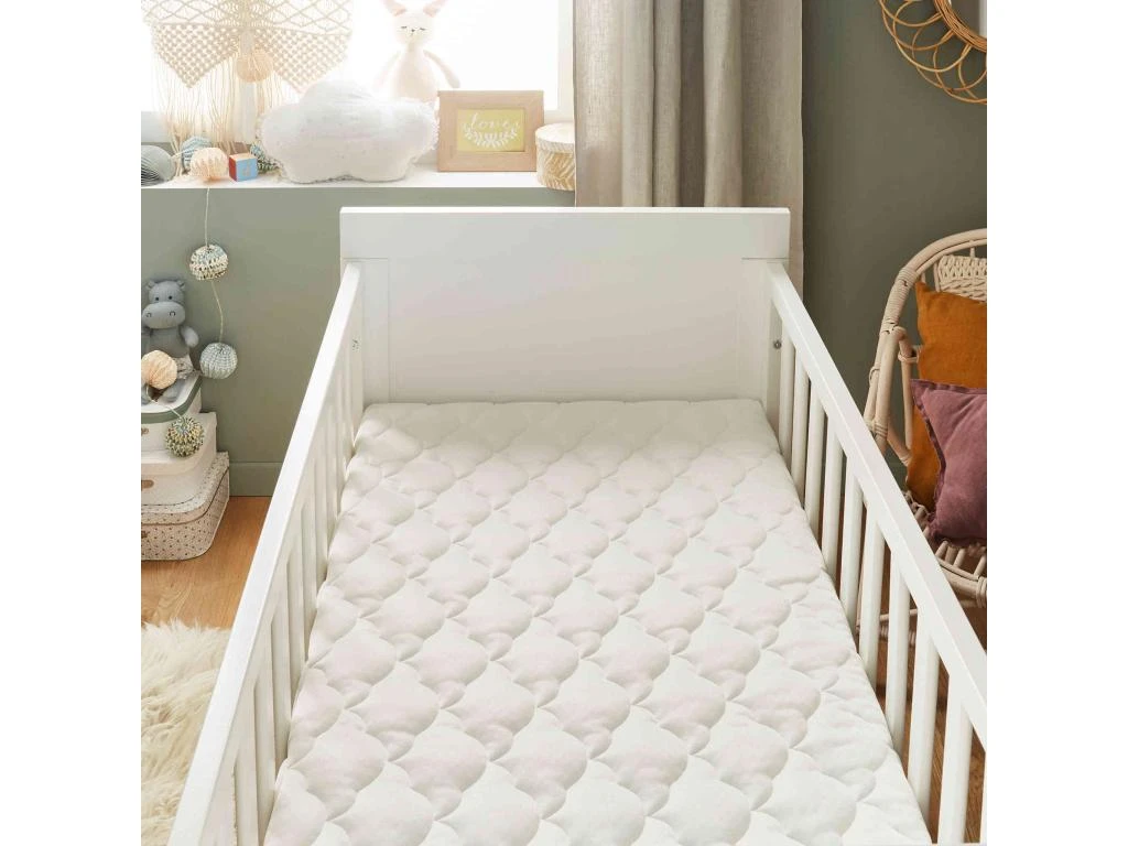 Matelas bébé déhoussable, housse lavable en machine à 40°C. Il comporte une face ét une face été plus chaude, pour un confort de bébé adapté à chaque saison.