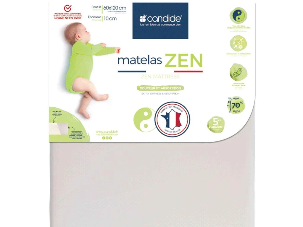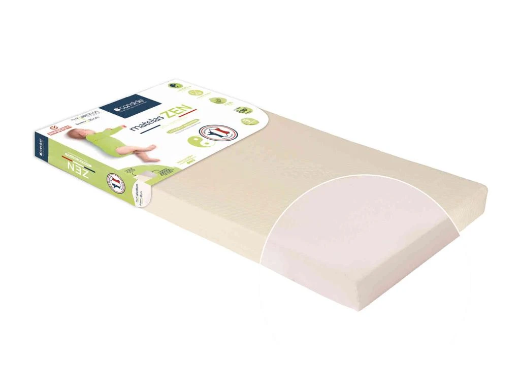 Matelas bébé ZEN, déhoussable. Epaisseur de 10 cm. Traitement anti-acariens et antibactérien. Lavable en machine à 30°C.