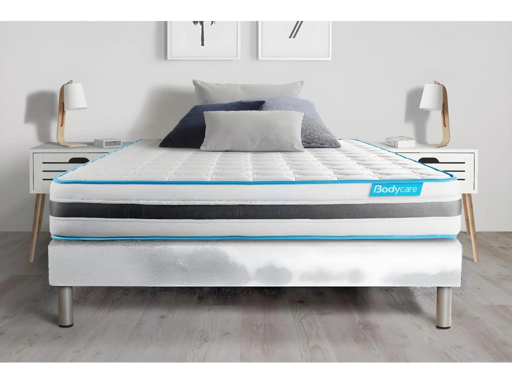 Le matelas BODYZONE de BODYCARE est constitué de ressorts ensachés procurant un soutien ferme et progressif. Sa conception unique offre un accueil dynamique et accompagne chaque mouvement de votre corps pour s’ajuster à chaque morphologie. Sa maxi épaisseur vous apporte douceur de contact et maintien enveloppant. Sa plate‐Bande 3D micro aérée, associée à son coutil micro perforé ultra respirable vous garantissent une aération optimisée du matelas.