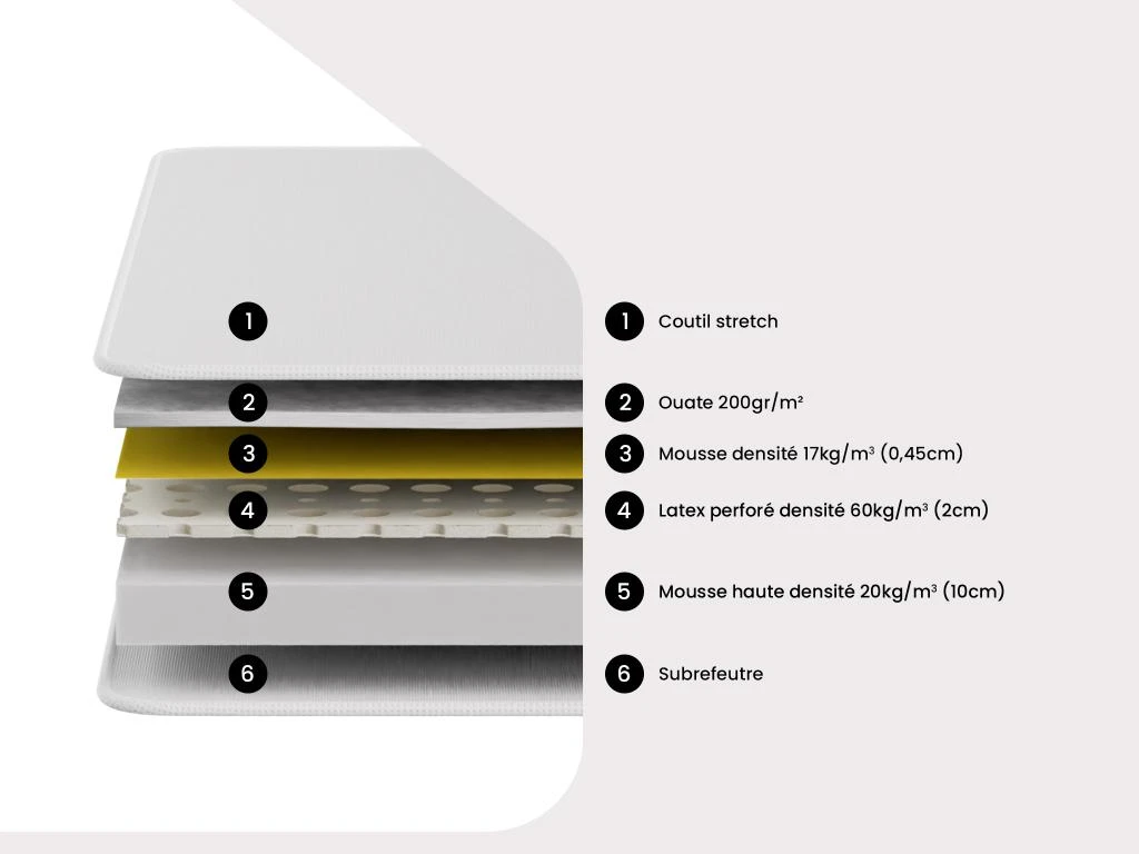 Mousse CertiPUR®, Tissu OEKO-TEX®, Latex OEKO-TEX®, Fabriqué en France