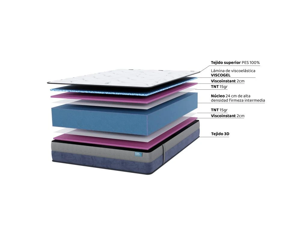 Noyau 24 cm. de haute densité, fermeté élevée.
