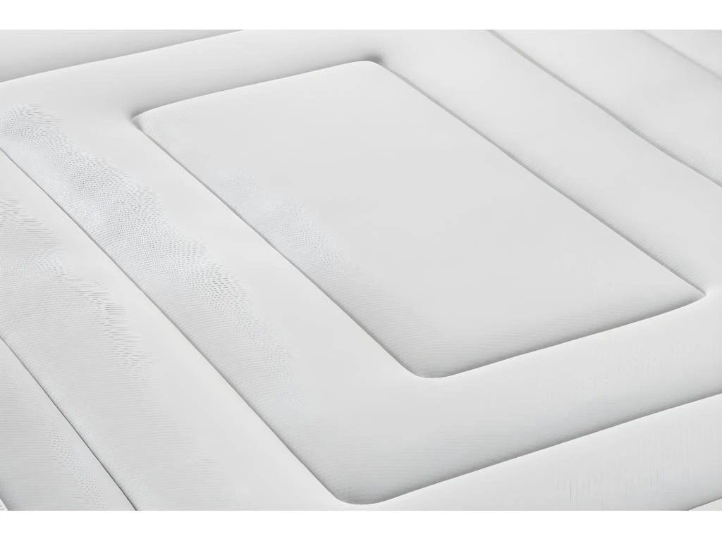 Confort ergonomique, Mousse à mémoire de forme et Ressorts ensachés, Allègement des points de pression, 7 zones de confort, Indépendance de couchage, Fabriqué en Europe, Certification Oeko-Tex Standard 100