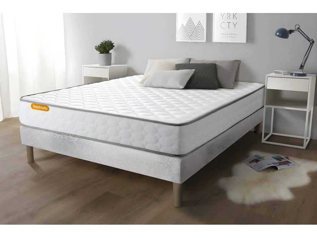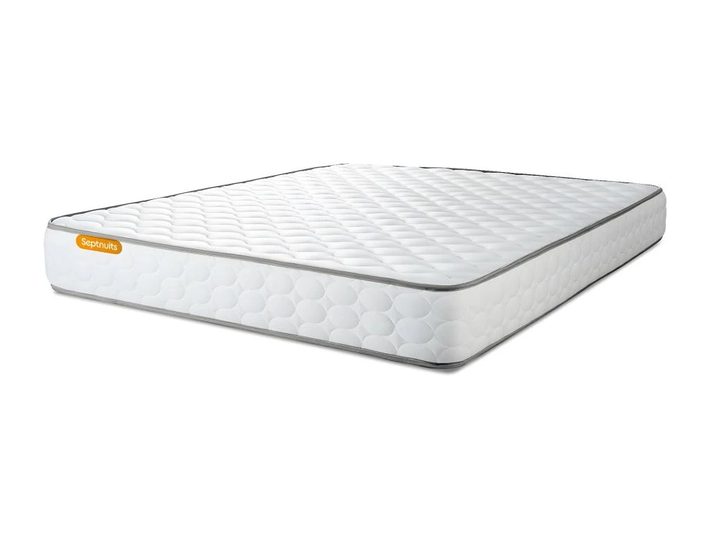 Le matelas Memo de la marque Septnuits a un soutien très ferme, son accueil dynamique réduit les points de pression. Ses matériaux de haute qualité : Plate-bande 3D micro aérée, son coutil ultra respirable et sa fibre polyester vous garantissent une aération totale du matelas pour une hygiène optimale.